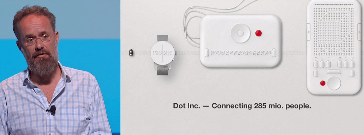 观众们随后在一个宣传视频中看到了这些概念的实际事例,该视频来自韩国公司Dot Incorporation,它为视力受损者生产新型产品,致力于“让触觉沟通可视化”。Dot Watch是世界首款盲文智能手表,能够实时传输信息,而Dot Mini能够访问各类数字媒体,并将其翻译为盲文,让阅读和聆听形成协同效果。Serviceplan Group不仅一直是开发这些产品的合作伙伴,还是Dot Incorporation的股东之一。